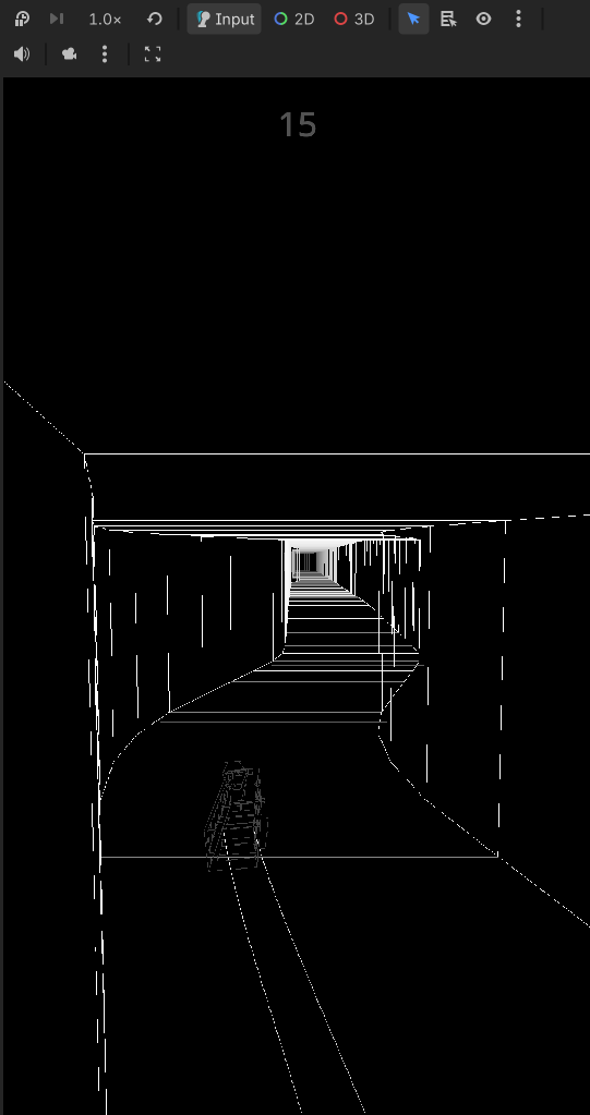 Visuals & Performance Visually, the game relies on an unlit, monochrome aesthetic as pure white geometry against a true black void. Because OLED screens completely turn off pixels to display black, this approach is highly battery efficient. To enhance the sense of speed, I widened the camera's field of view, creating a natural tunnel vision effect as the environment rushes past the edges of the screen.
